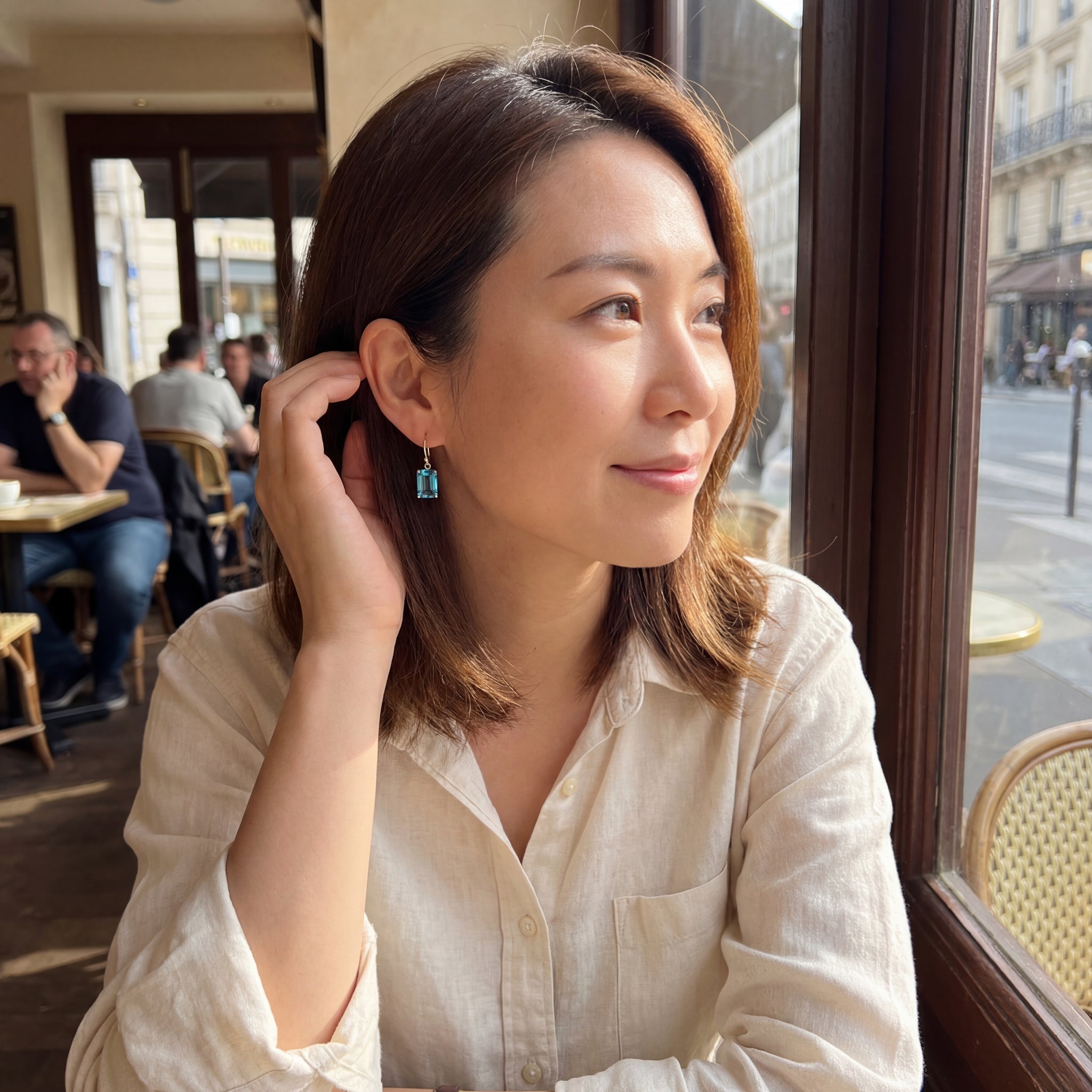 Radiating vivid, glacial-blue brilliance, these Swiss Blue Topaz earrings are set in 9ct Yellow Gold and feature elegant Emerald-cut gemstones (12mm x 8mm). The elongated facets amplify colour and light, while a precise claw setting allows maximum brilliance. Suspended from classic Shepherd hooks, they offer graceful movement and a refined silhouette—timeless, polished, and effortlessly striking.