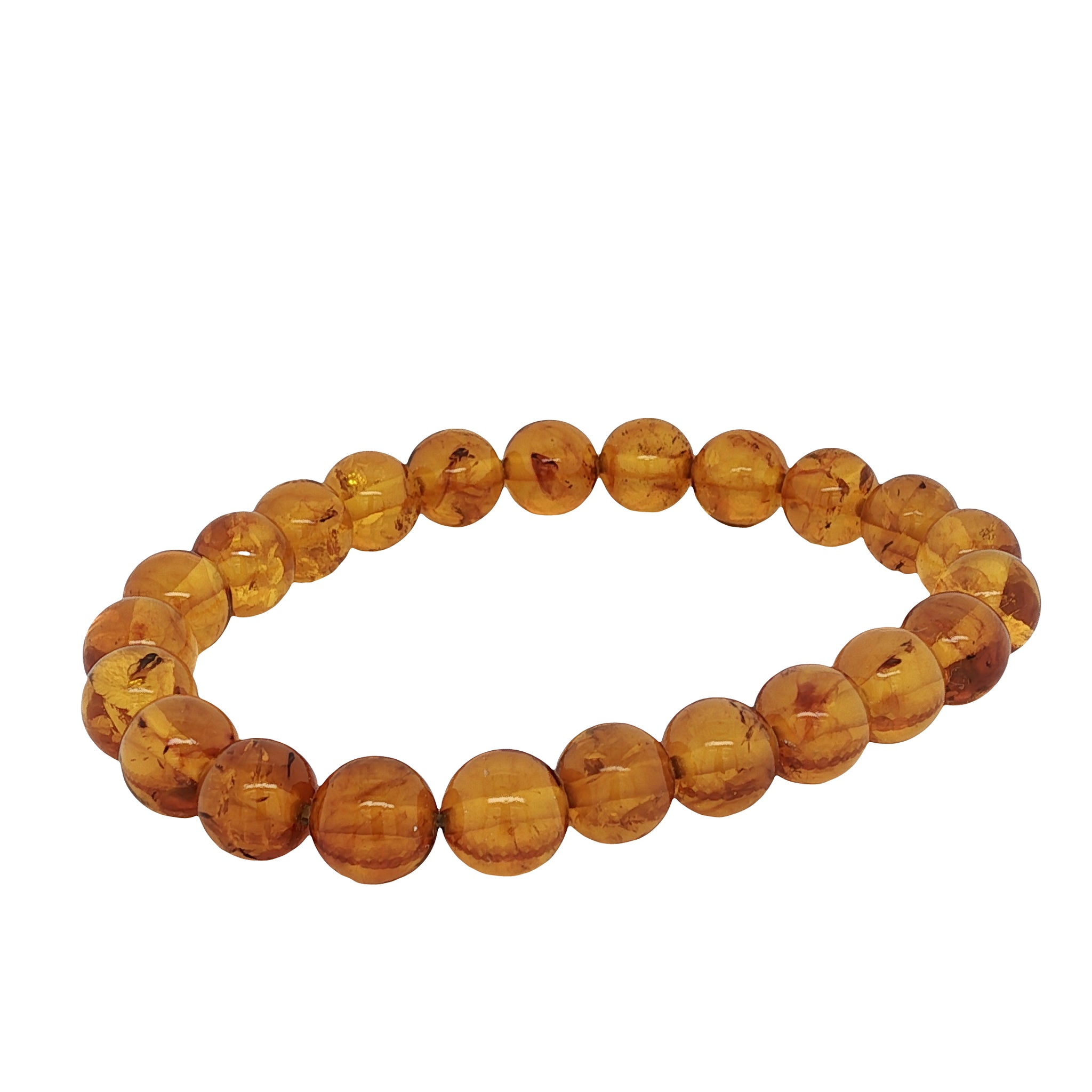 This Baltic Amber Stretch Bracelet features genuine Amber from Poland, formed over millions of years and prized for its natural warmth. Smooth 8mm round beads display rich honey tones, with natural variations that make each bracelet unique.