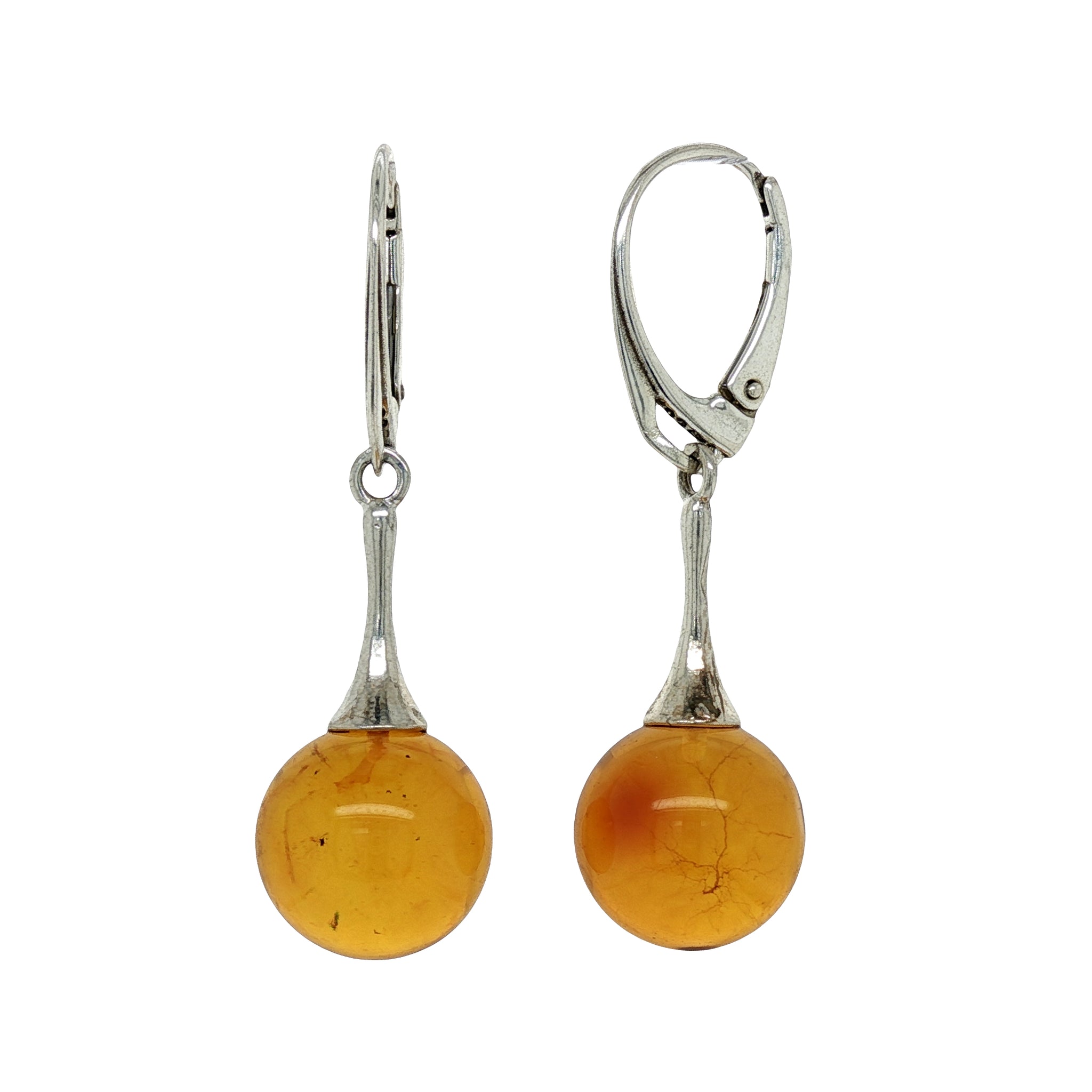 These contemporary Sterling Silver Baltic Amber earrings feature light-toned Amber globes sourced from Poland, each carrying no inclusions that create a soft inner glow. The unframed 12mm spheres hang freely from secure lever-back hooks, giving the design a gentle, effortless movement. Elegant in their simplicity yet rich in character, they offer a refined modern aesthetic with the warmth only genuine Baltic Amber provides.