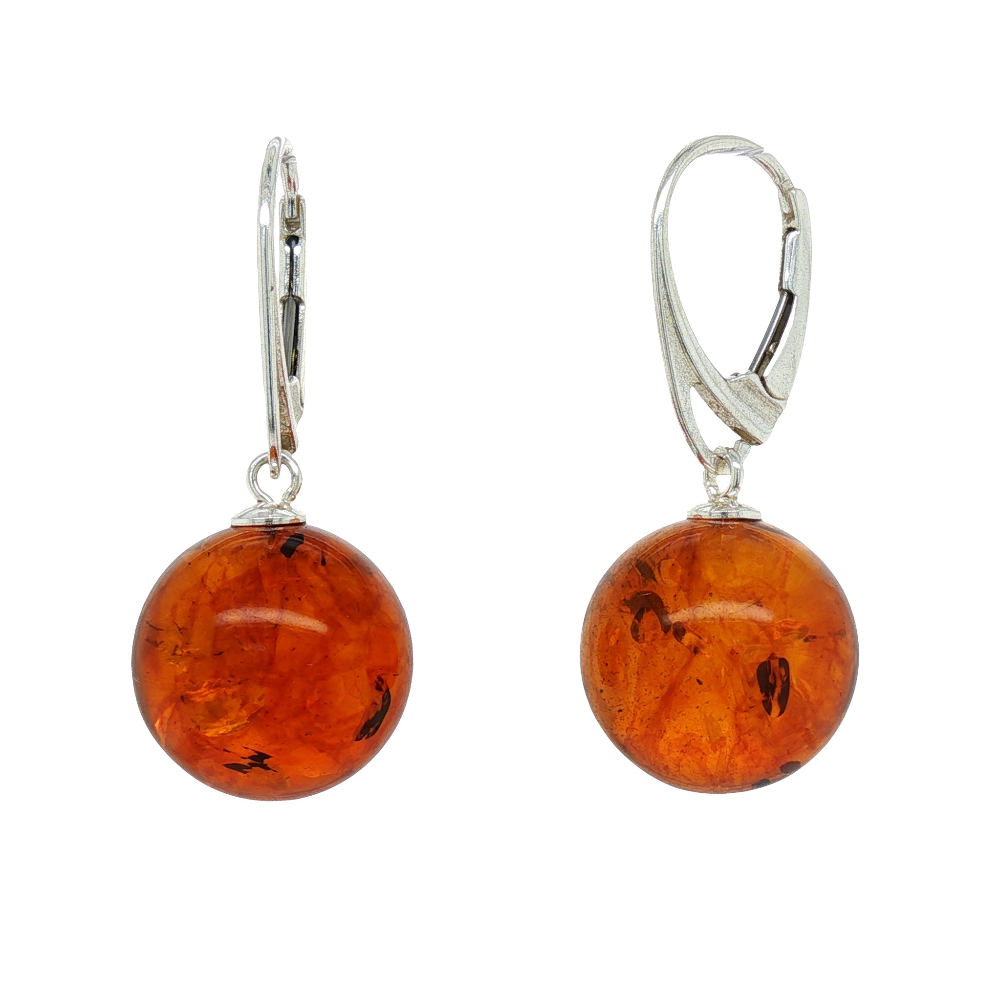 The globes are suspended from secure Sterling Silver lever-back hooks, offering ease, comfort, and confident wear. Balanced and naturally lightweight, these earrings move gently with the wearer, making them an elegant choice for everyday styling while retaining the quiet luxury of genuine Baltic Amber.