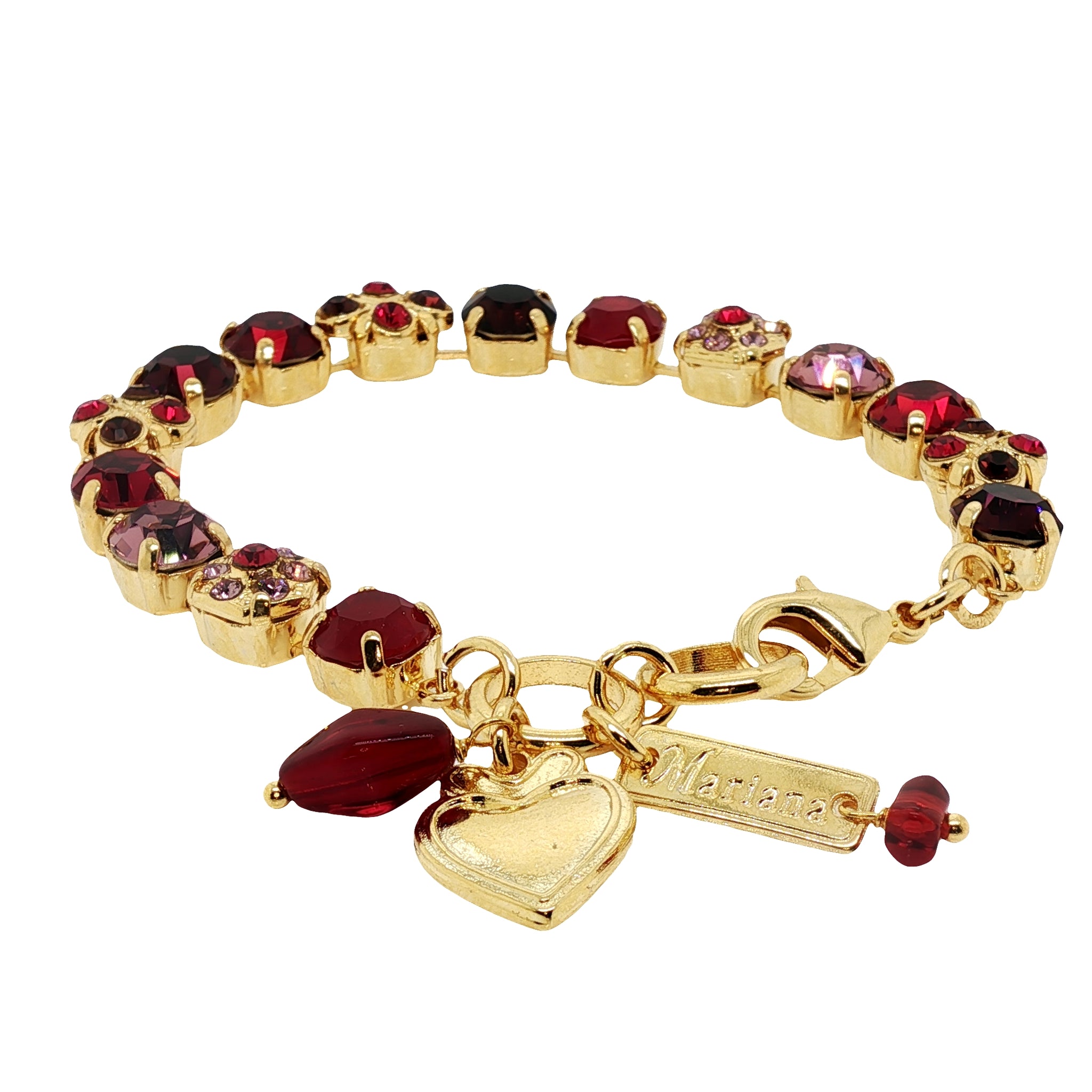 Elevate your look with the Mariana Jewellery Cranberry Crush Bracelet, a vibrant statement piece from the Raise a Glass Collection. Designed with rich red and warm pink tones, this bracelet showcases genuine Swarovski and Czech crystals paired with semi-precious stones for a luminous, eye-catching finish.
