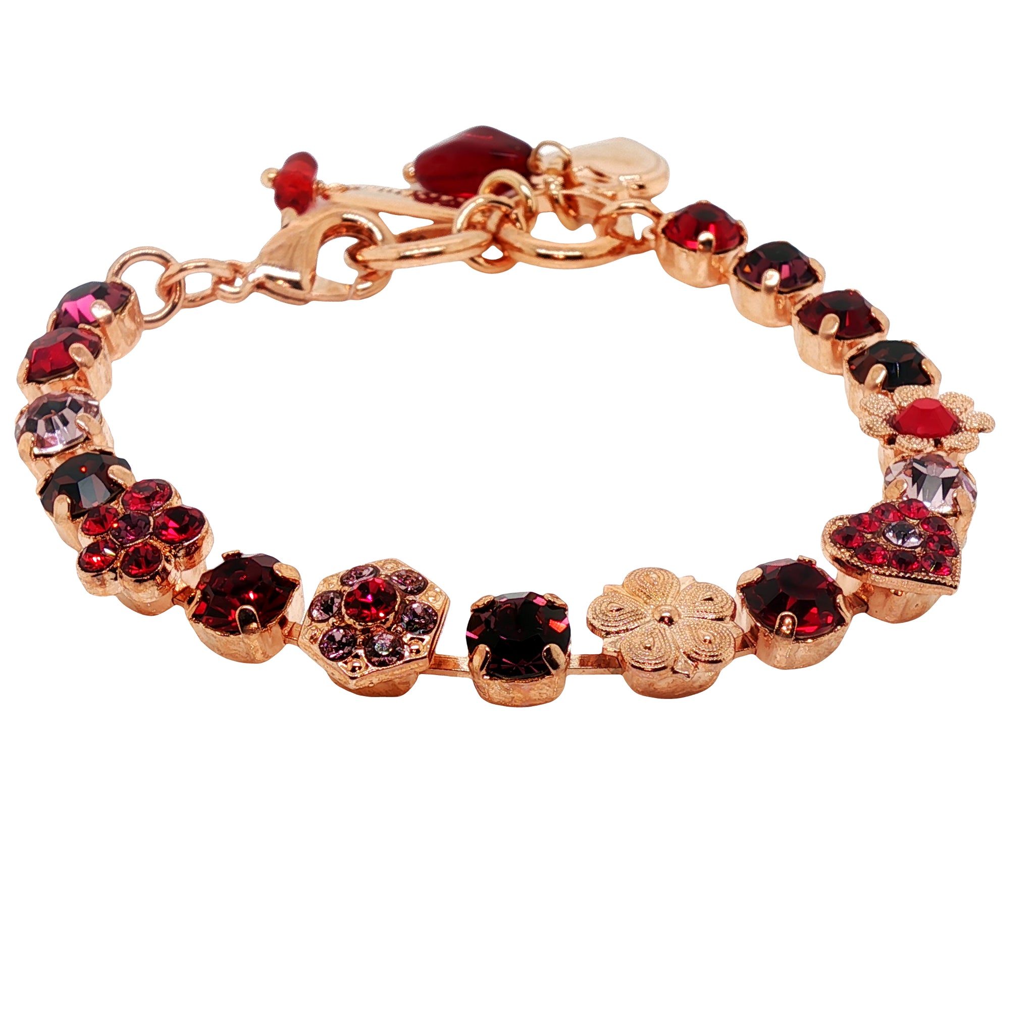 Add a touch of bold elegance with this Mariana Jewellery Cranberry Crush Bracelet from the Raise a Glass Collection. This beautiful bracelet features rich red and warm pink crystals, perfectly handcrafted to catch the light from every angle. Made with genuine Swarovski and Czech crystals, and semi-precious stones, each piece reflects Mariana’s signature artistry and timeless style. Lovingly handmade and designed for comfort, the bracelet is nickel free, lead-free, and hypoallergenic, making it suitable for sensitive skin. Adjustable between 18–19cm, it’s perfect for everyday luxury or a special occasion.