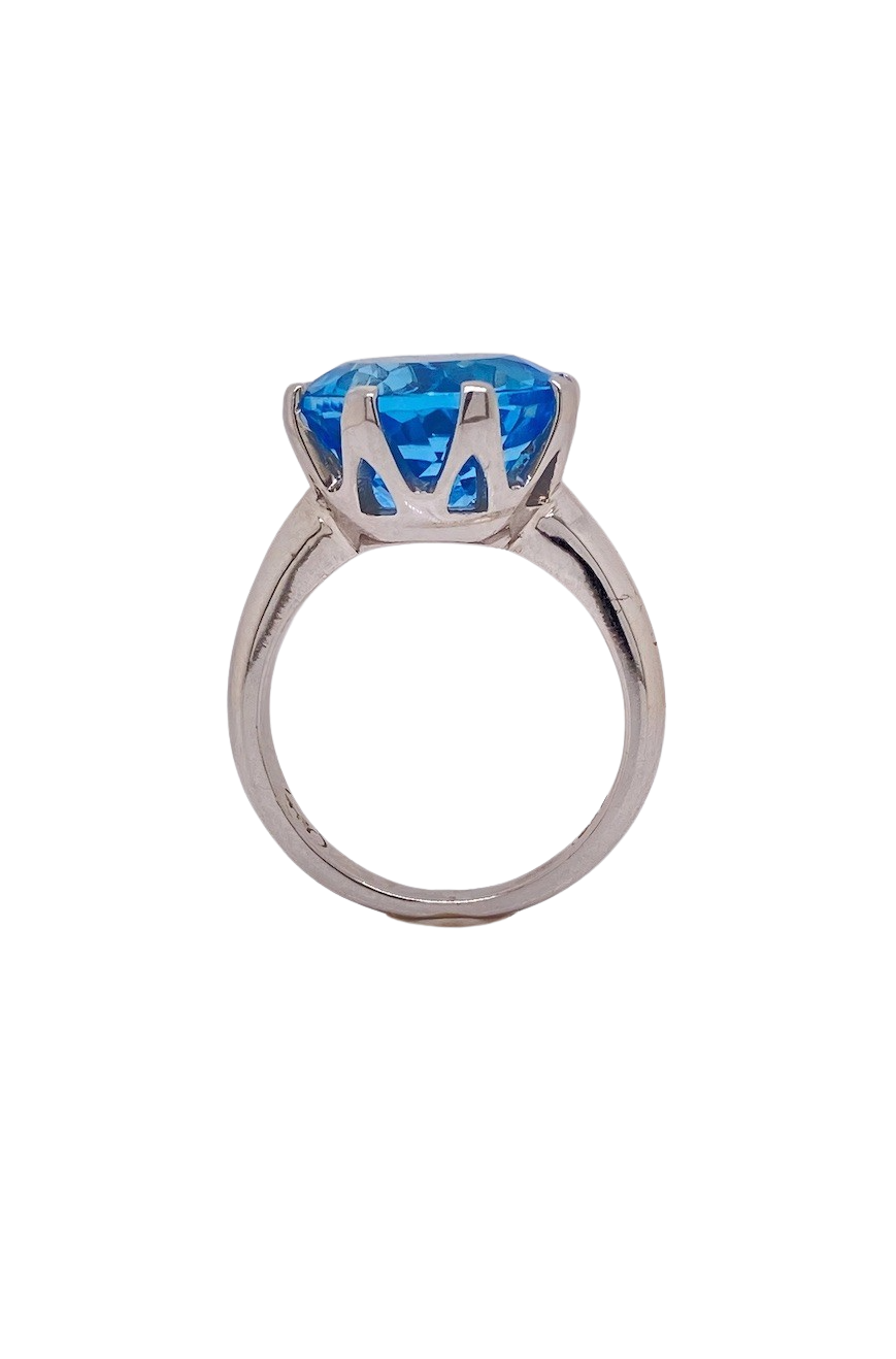 Elevate your style with this Sterling Silver Swiss Blue Topaz ring, featuring a 13mm round-cut gemstone in a secure claw setting. Its contemporary design and vivid blue tones make it a versatile piece for any occasion, offering effortless elegance and a pop of vibrant colour. Perfectly suited for everyday wear or special events, this ring combines craftsmanship with timeless style in a size N ¼ (7).