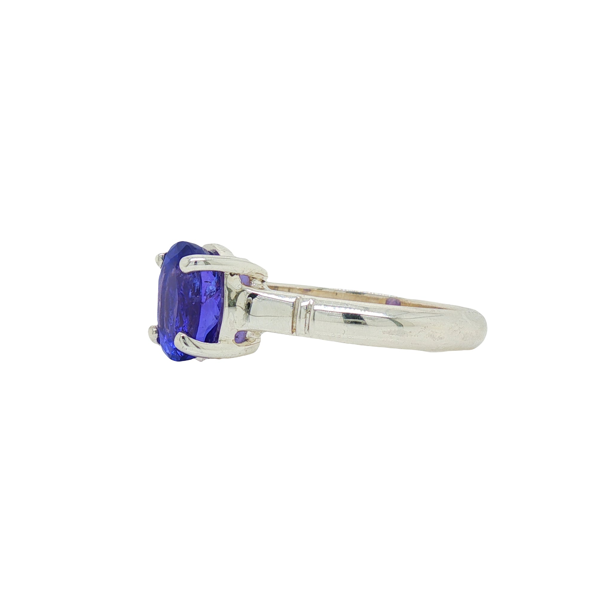 A captivating fusion of colour and craftsmanship, this Sterling Silver Tanzanite ring features a vivid 9mm x 7mm oval-cut faceted gemstone displaying mesmerising Purple/Blue flashes. The secure claw-set design highlights the natural brilliance of the Tanzanite, while the contemporary Sterling Silver band adds a modern edge to its timeless beauty. Perfect for any occasion, this elegant ring in size Q ½ (8 ½) brings sophistication, sparkle, and the enchanting hues of Tanzanite to your jewellery collection.