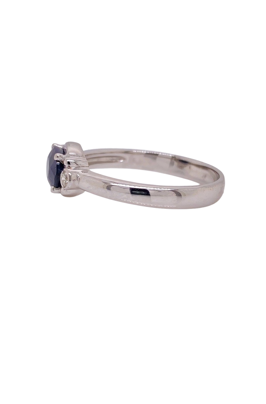 Discover timeless sophistication with this 9ct White Gold Sapphire and Diamond ring, crafted for understated elegance. Featuring a 7mm x 5mm oval-cut, faceted Sapphire at its centre, this ring is accented by two sparkling diamonds set gracefully on the shoulders, creating a refined, minimalist design. Perfect for everyday wear or special occasions, this size N (6 ¾) ring exudes effortless style and versatility. A contemporary classic that complements any wardrobe, it is ideal for those who appreciate subtle luxury and enduring quality.