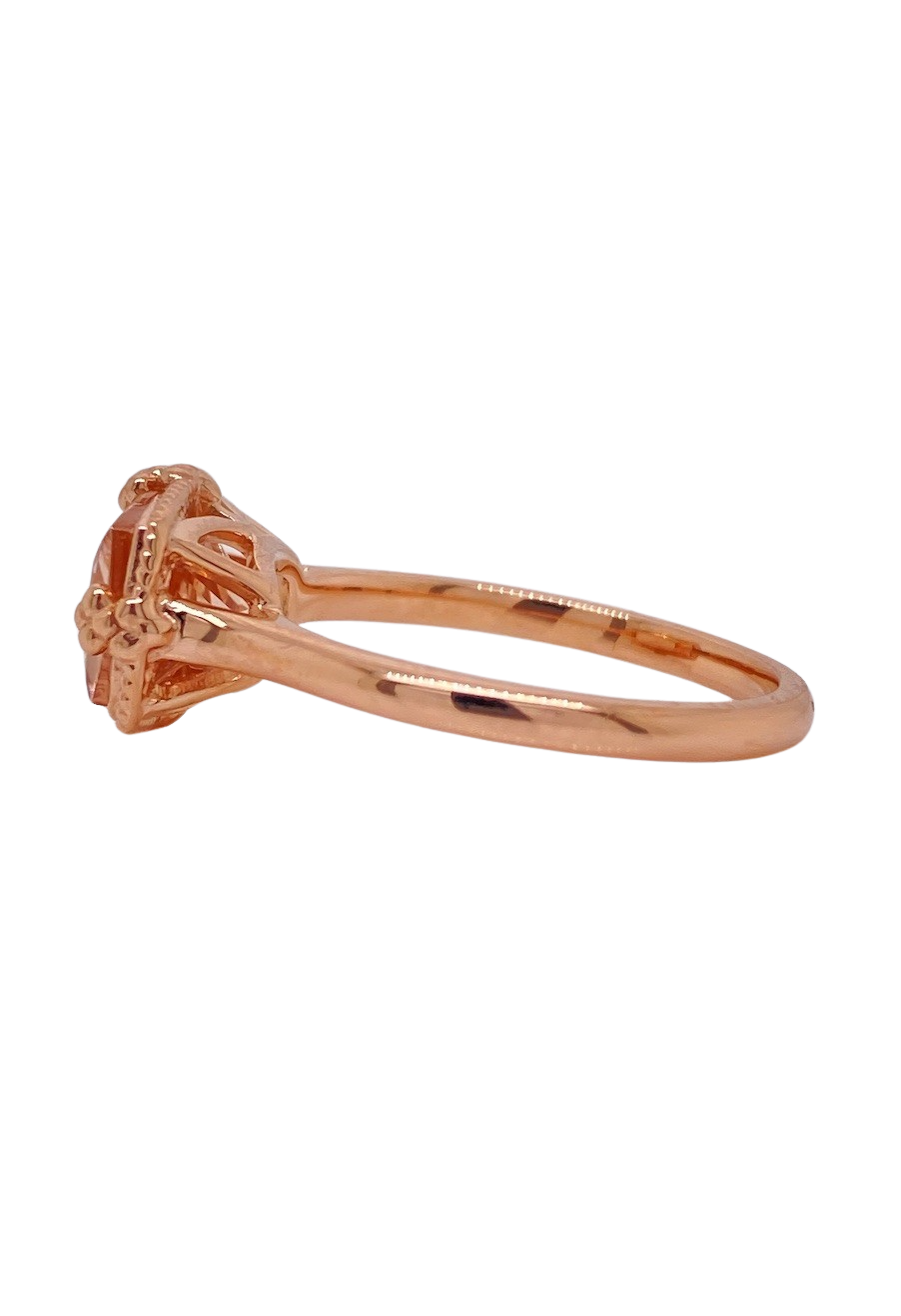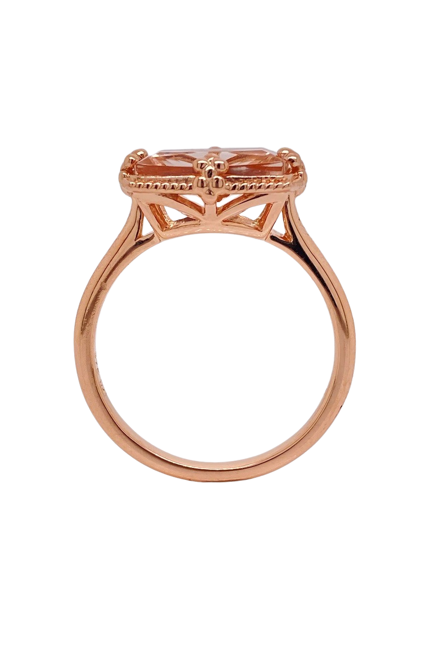Immerse yourself in understated luxury with this 9ct Rose Gold Morganite ring, a masterful union of soft pink serenity and timeless elegance. At its heart, a rectangular 11mm x 7mm faceted Morganite gemstone radiates delicate warmth, claw-set to capture and refract light with every movement. The Rose Gold band, polished to a gentle sheen, harmonises effortlessly with the gemstone’s blush tones, creating a subtle yet captivating glow. Handcrafted with exceptional attention to detail, this ring embodies sophistication for any occasion. Its complementary tonal palette enhances the gemstone’s natural beauty, while the refined size O (7 ½) design ensures comfort without compromising visual impact. This is more than a ring—it is a wearable testament to elegance, romance, and enduring craftsmanship.