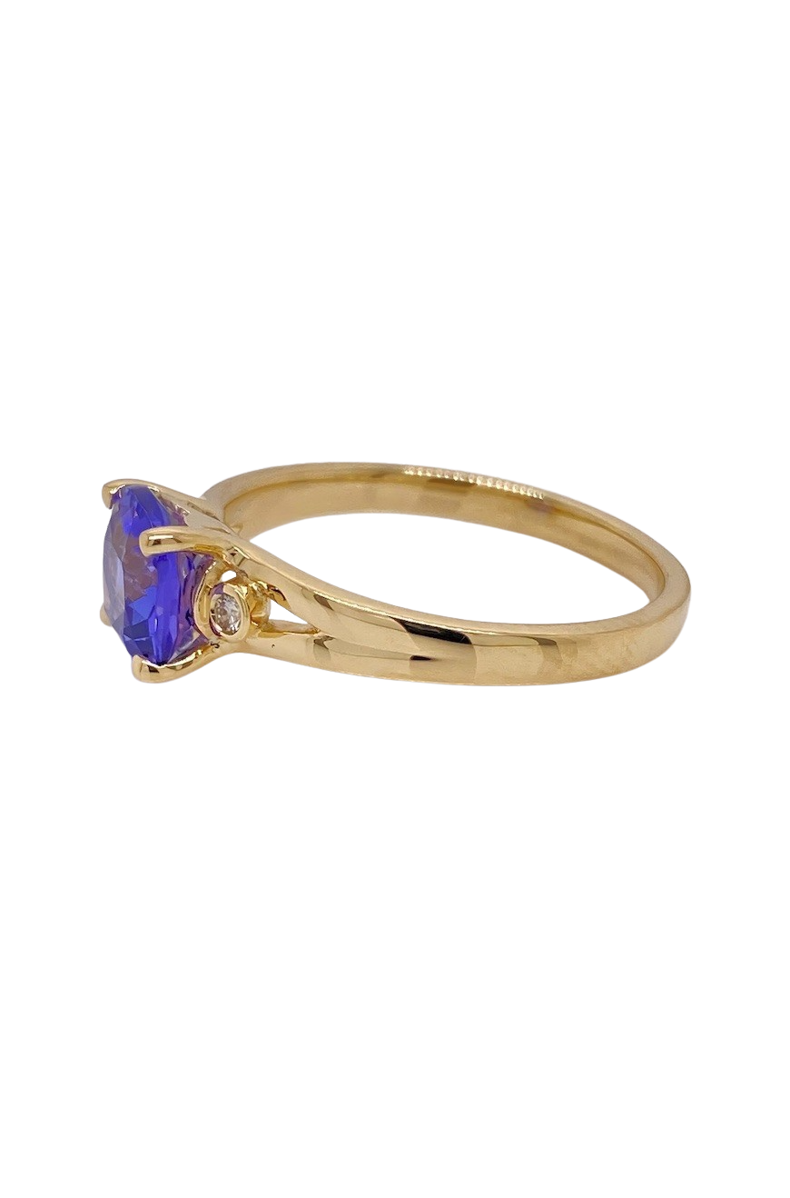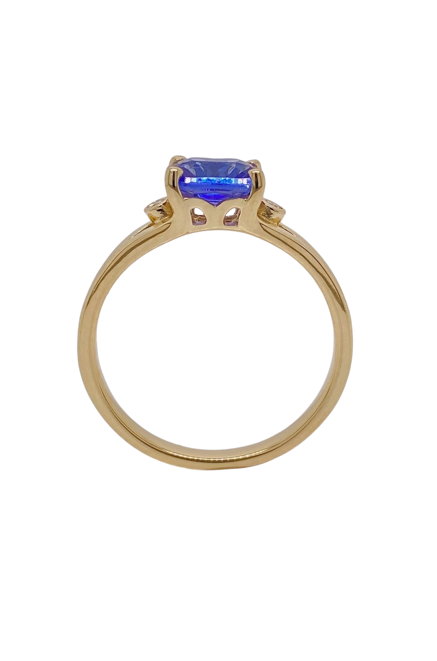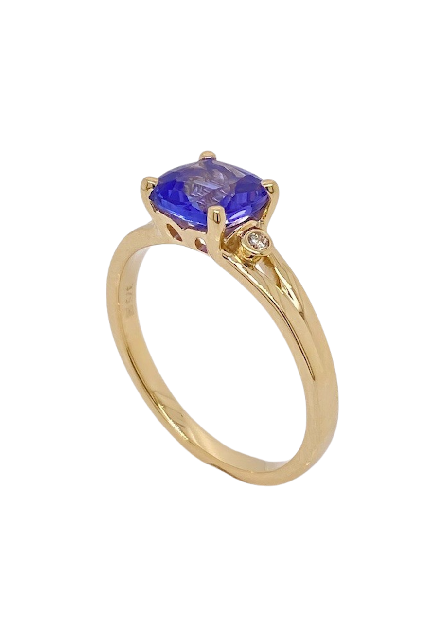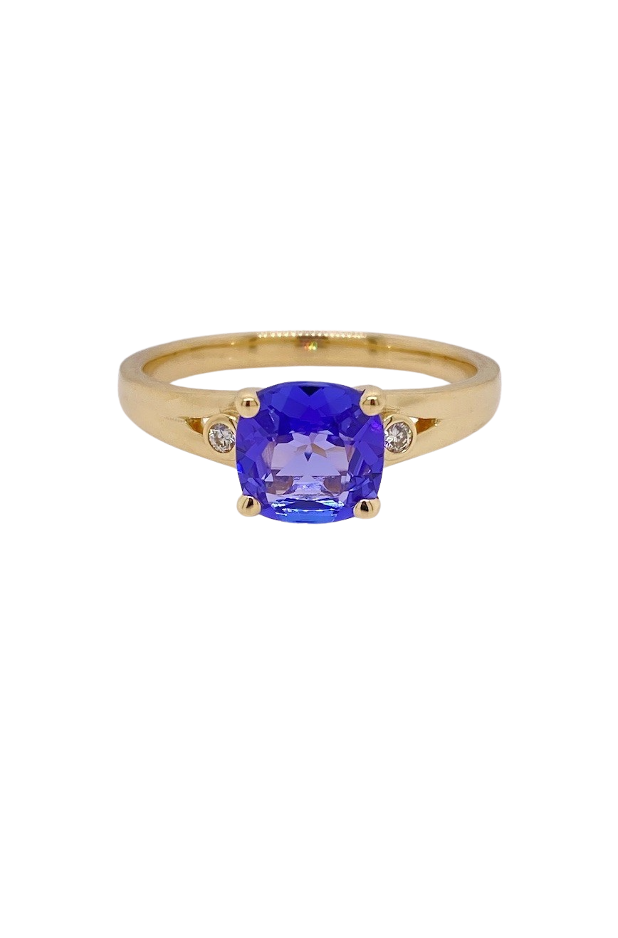 Discover unparalleled elegance with this stunning 9ct Yellow Gold Tanzanite and Diamond ring. At its heart lies a dazzling 1.70ct cushion-cut Tanzanite gemstone, measuring a striking 7mm and radiating rich, velvety blue-violet hues that evoke luxury and sophistication. Flanking this exquisite centerpiece are two lustrous brilliant-cut SI3-JKL diamonds, each approximately 1.55 to 1.60mm in size, adding a sparkling 0.03cts total diamond weight to elevate the ring’s brilliance. Expertly crafted in radiant 9ct Yellow Gold, this size N ½ (7) ring blends classic charm with modern allure, perfect for those seeking timeless beauty with a vibrant pop of colour. Whether an unforgettable gift or a personal indulgence, this Tanzanite and Diamond ring promises to shine for a lifetime. Please enquire for alternative sizes.